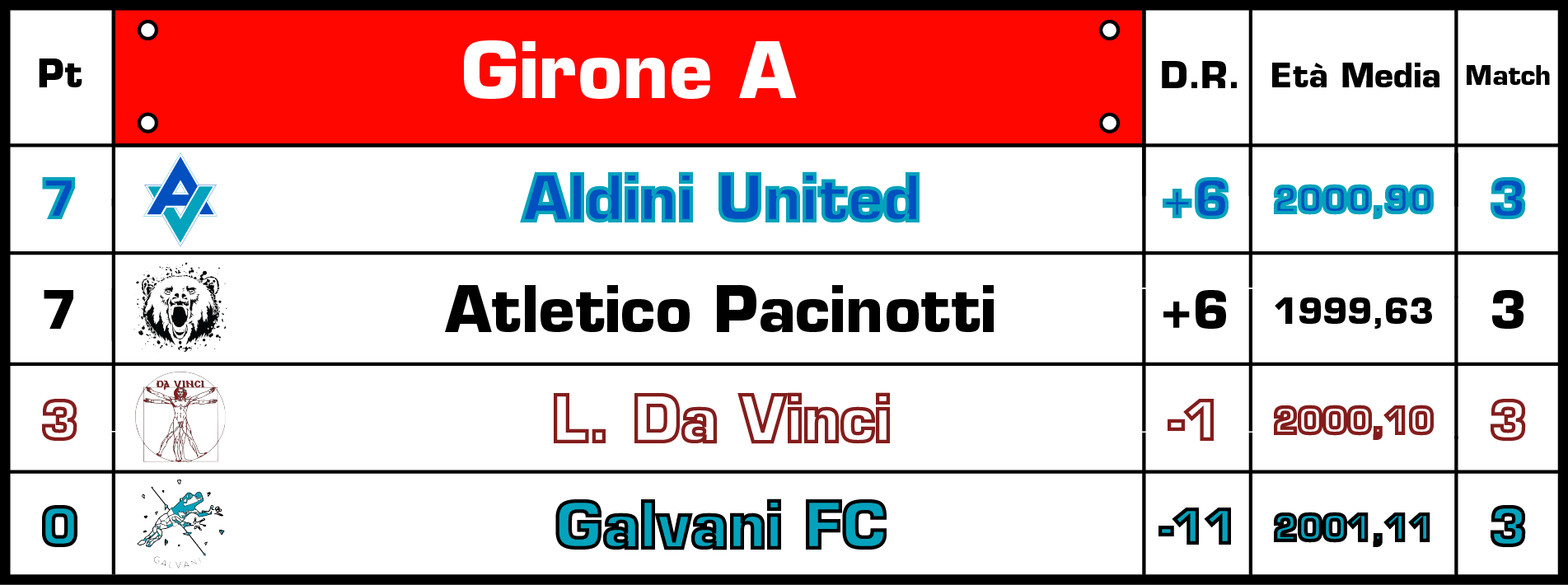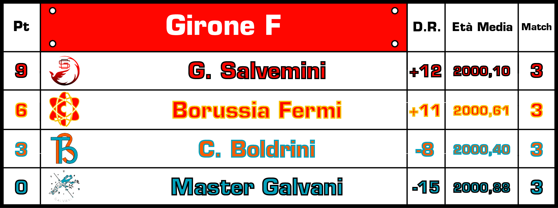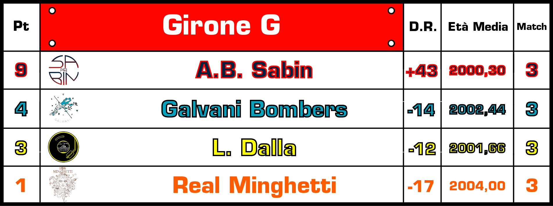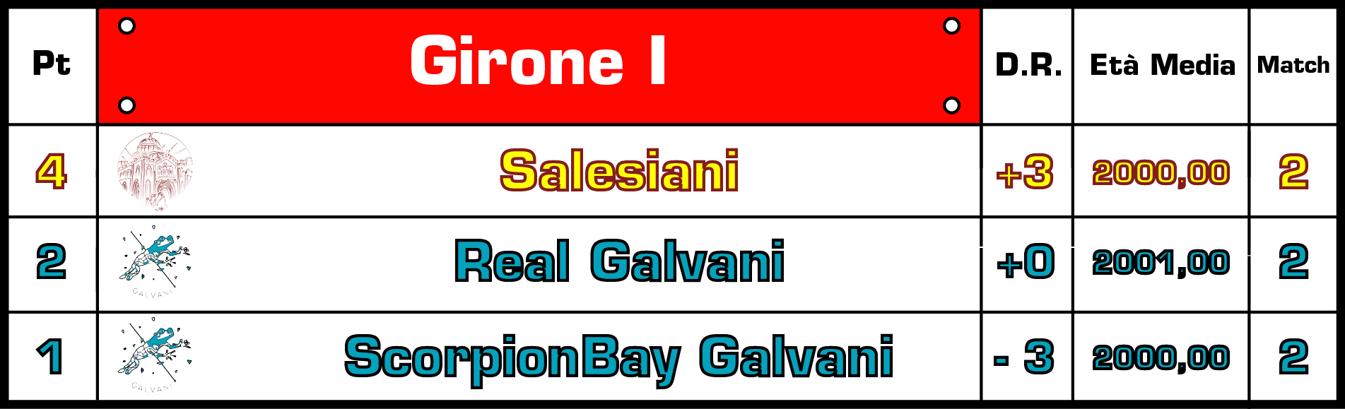 1° Posto - A.B. Sabin 2° Posto - G. Salvemini 3° Posto - Aldini United